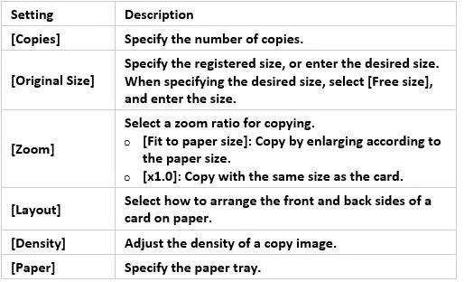 To copy various cards such as a Passport, Driving licence, National insurance & Standard ID cards, use the ID card mode. By carrying out a simple operation, you can copying from a front and back of card to create a single side document.